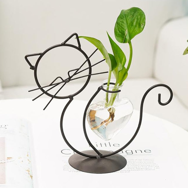 Cute Cat Iron Art Hydroponic Vase