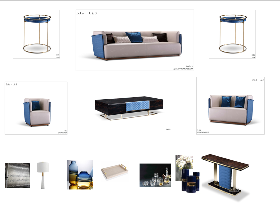 The color duo of blue and white presents a very clean and sheek look. The furniture has a variety of shades of blue and the black/white easily matches surrounding objects. Blues can match several different types of textures such as leather, silk, and many more.